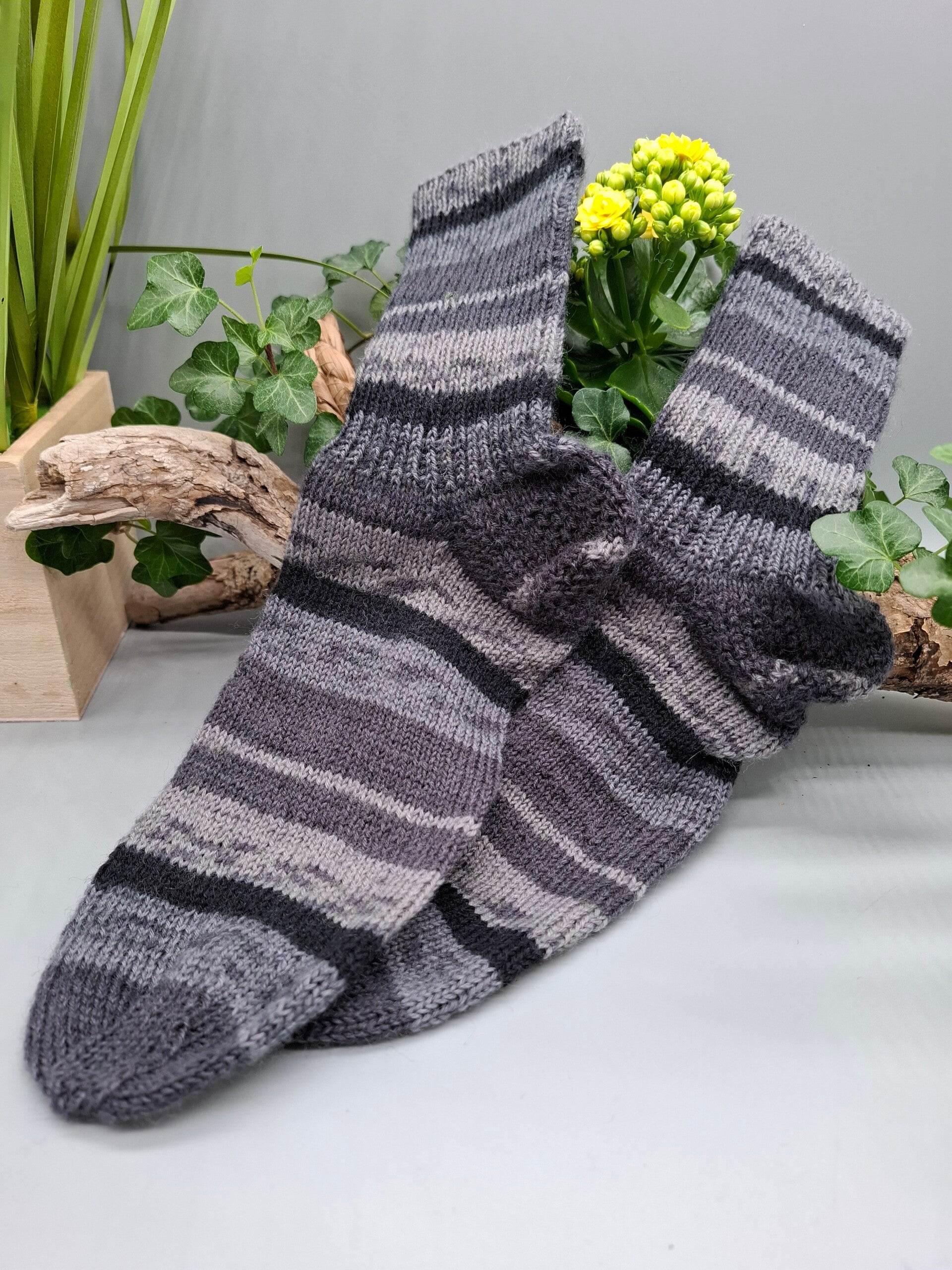 Die Socken werden mit hochwertiger Sockenwolle gestrickt.