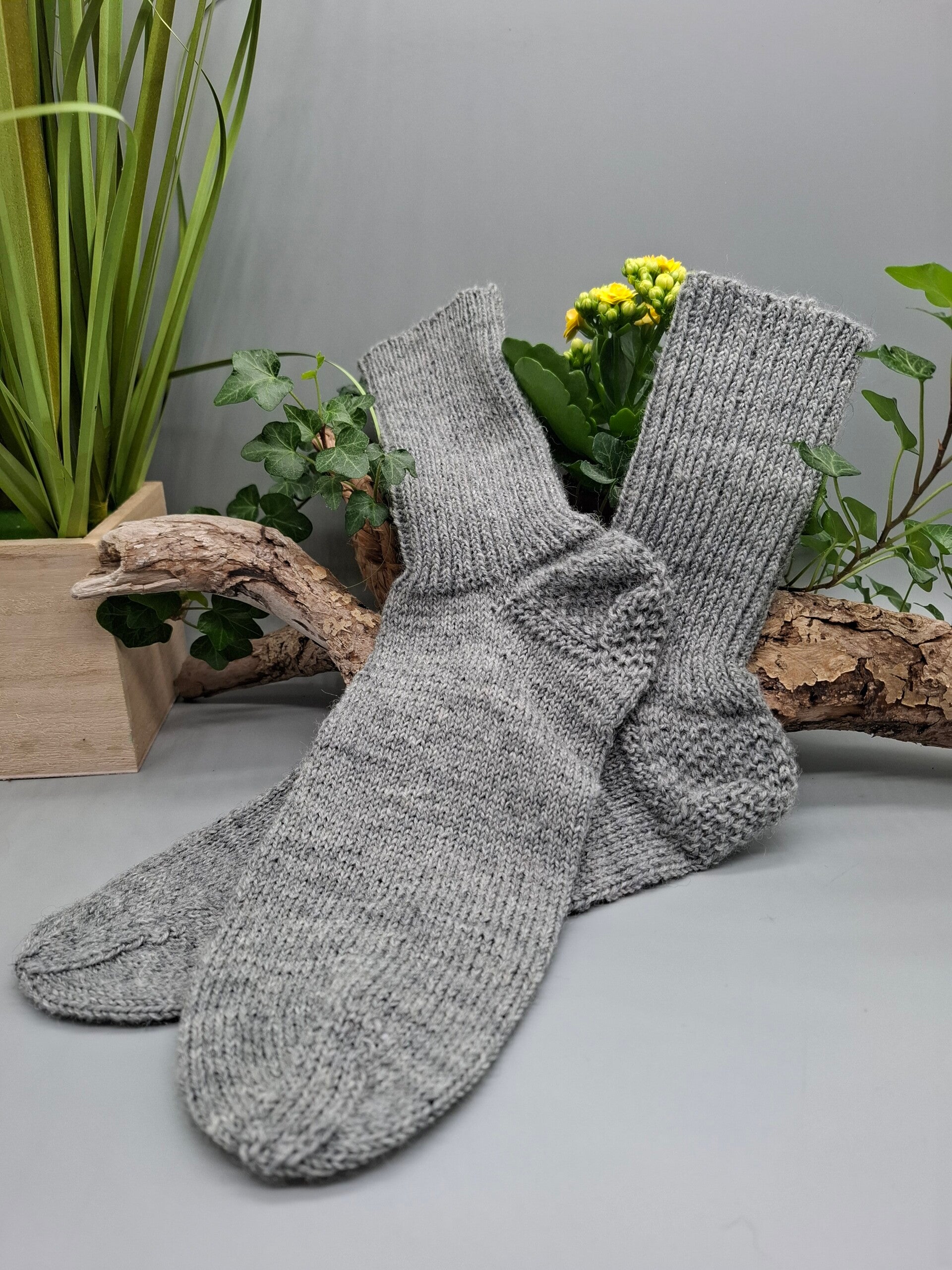 Die Socken werden mit hochwertiger Sockenwolle gestrickt.