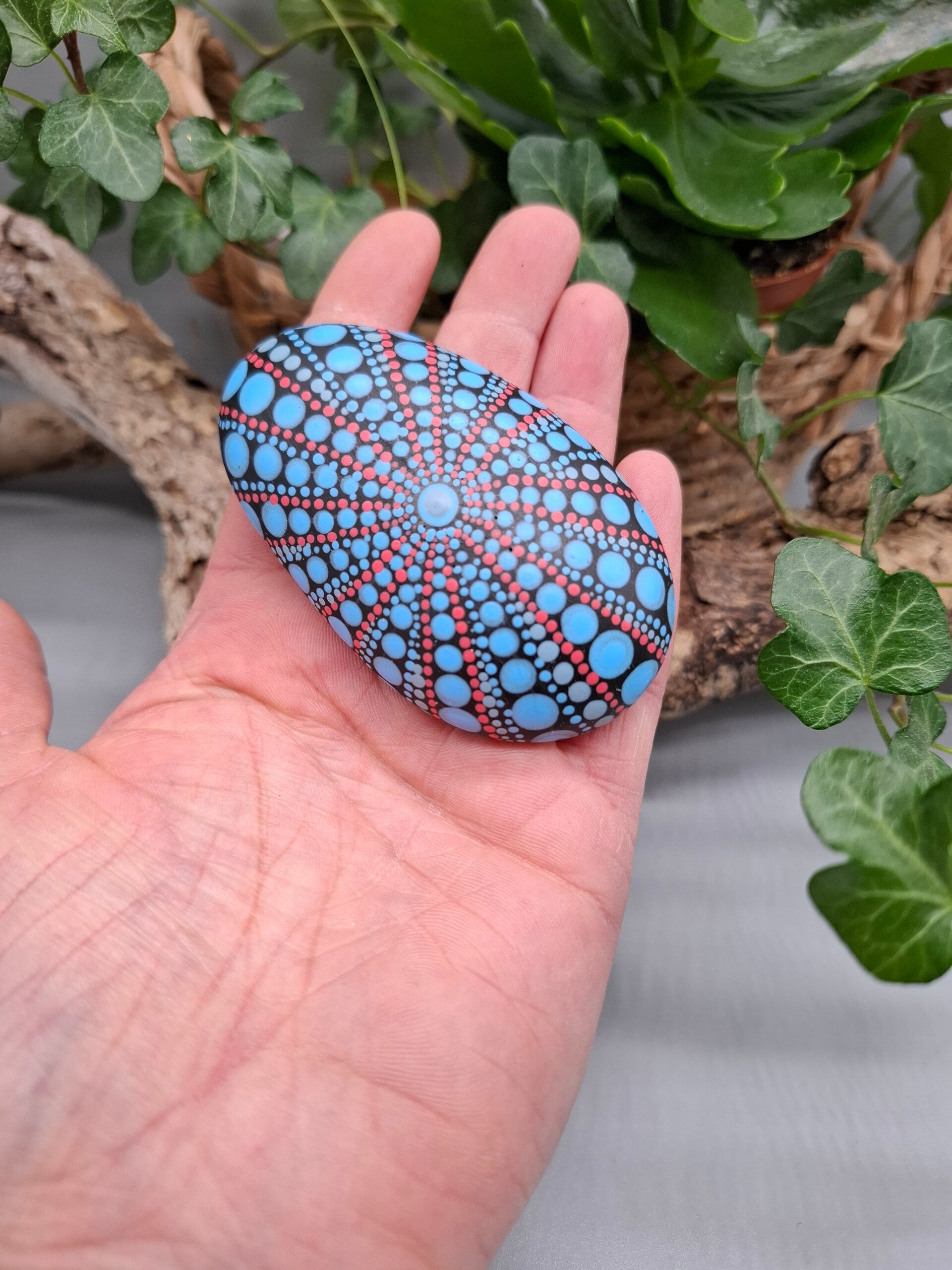 Dieser handbemalte Stein ist aus Beton gegossen.