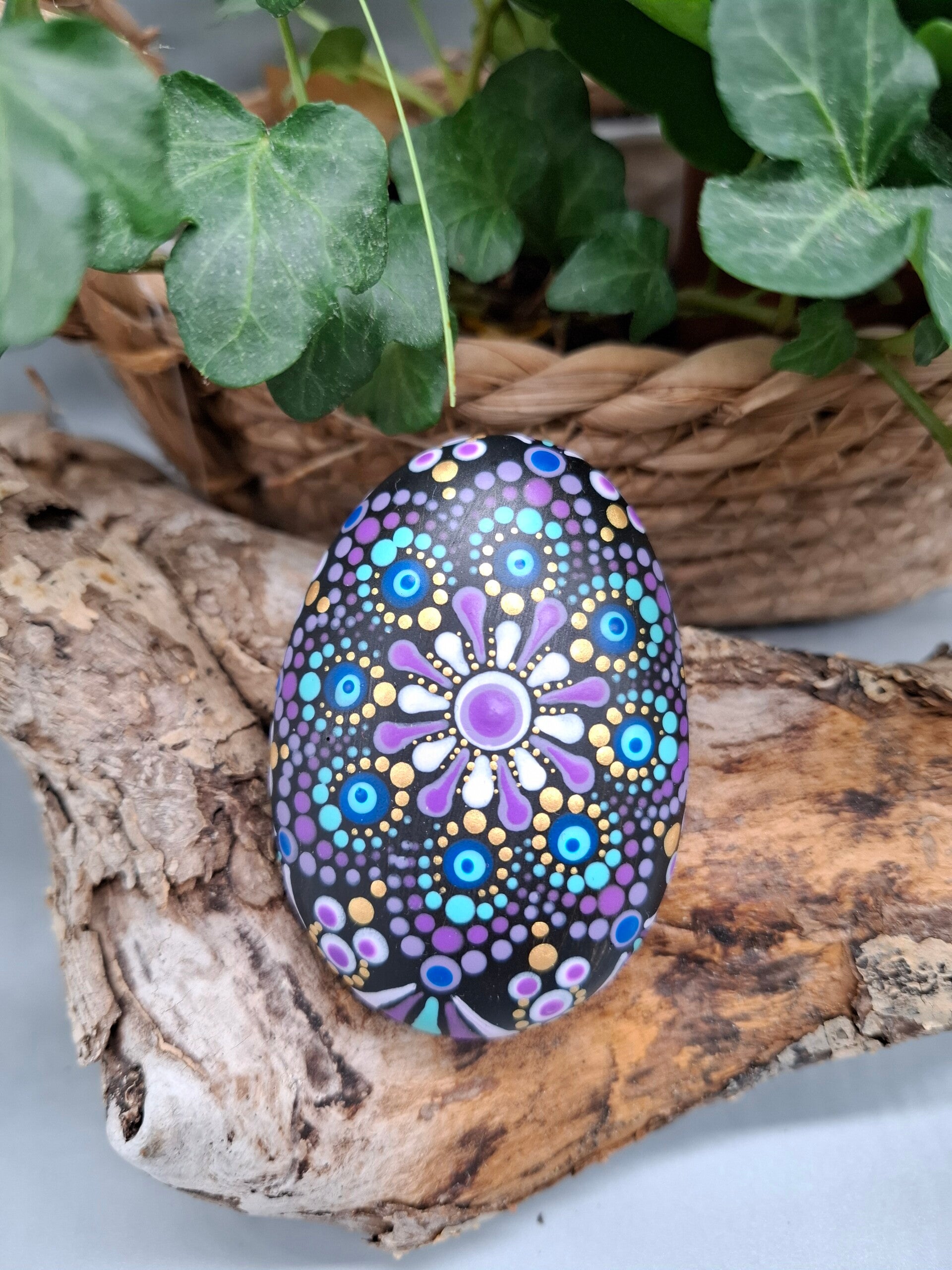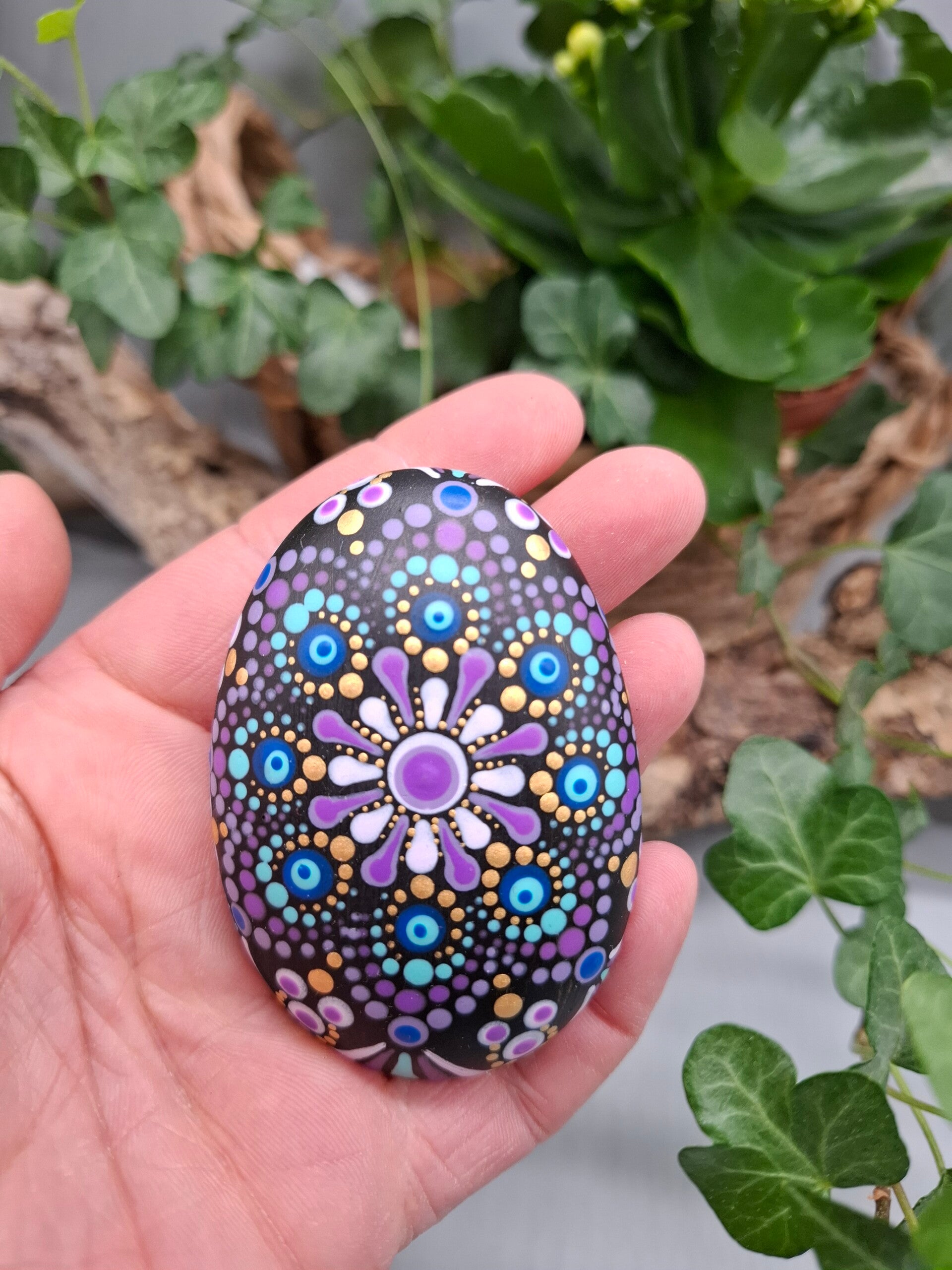 Dieser handbemalte Stein ist aus Beton gegossen.