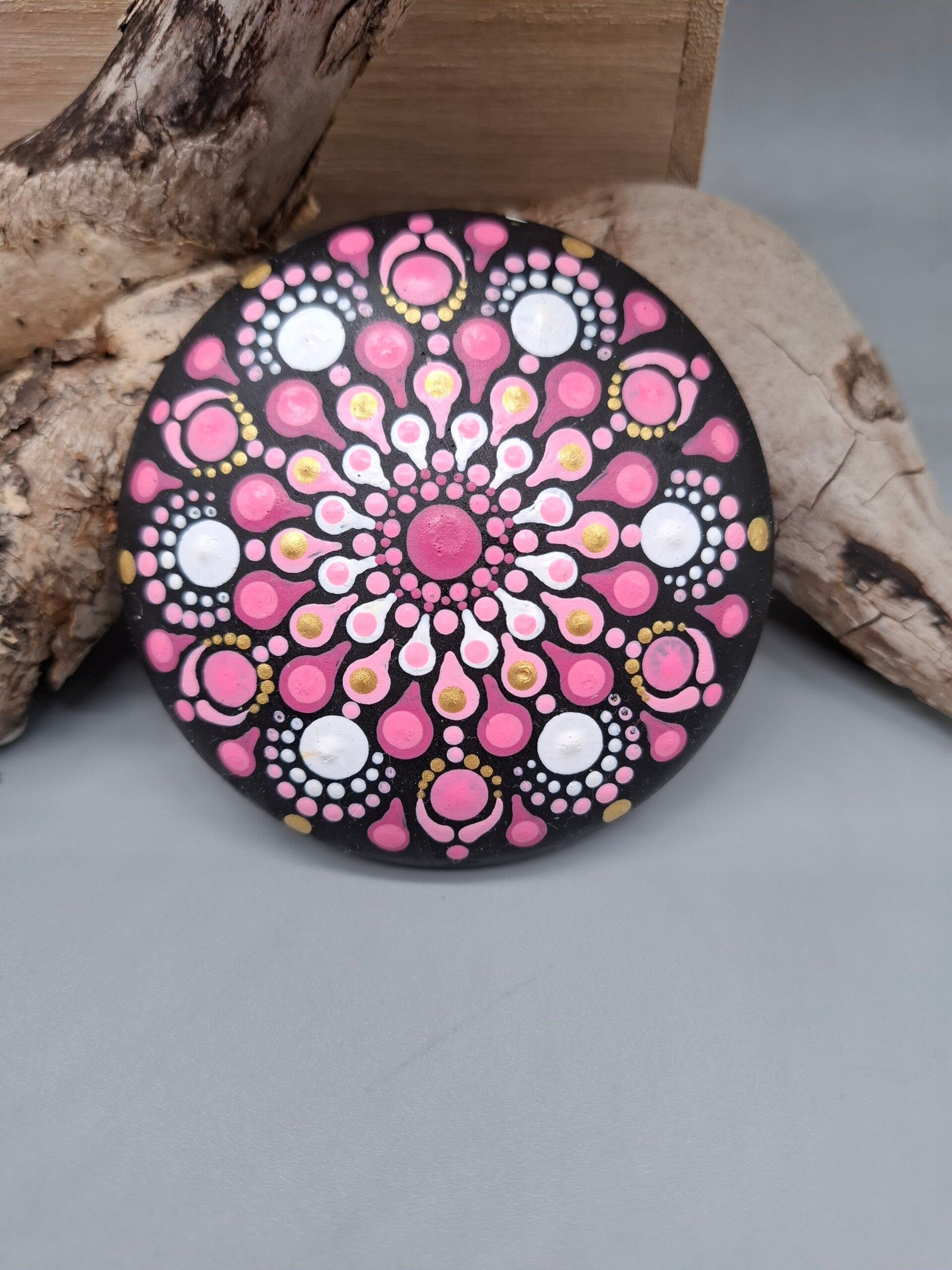 Nach dem Malen mit Acrylfarbe wurde der Stein nachträglich lackiert.