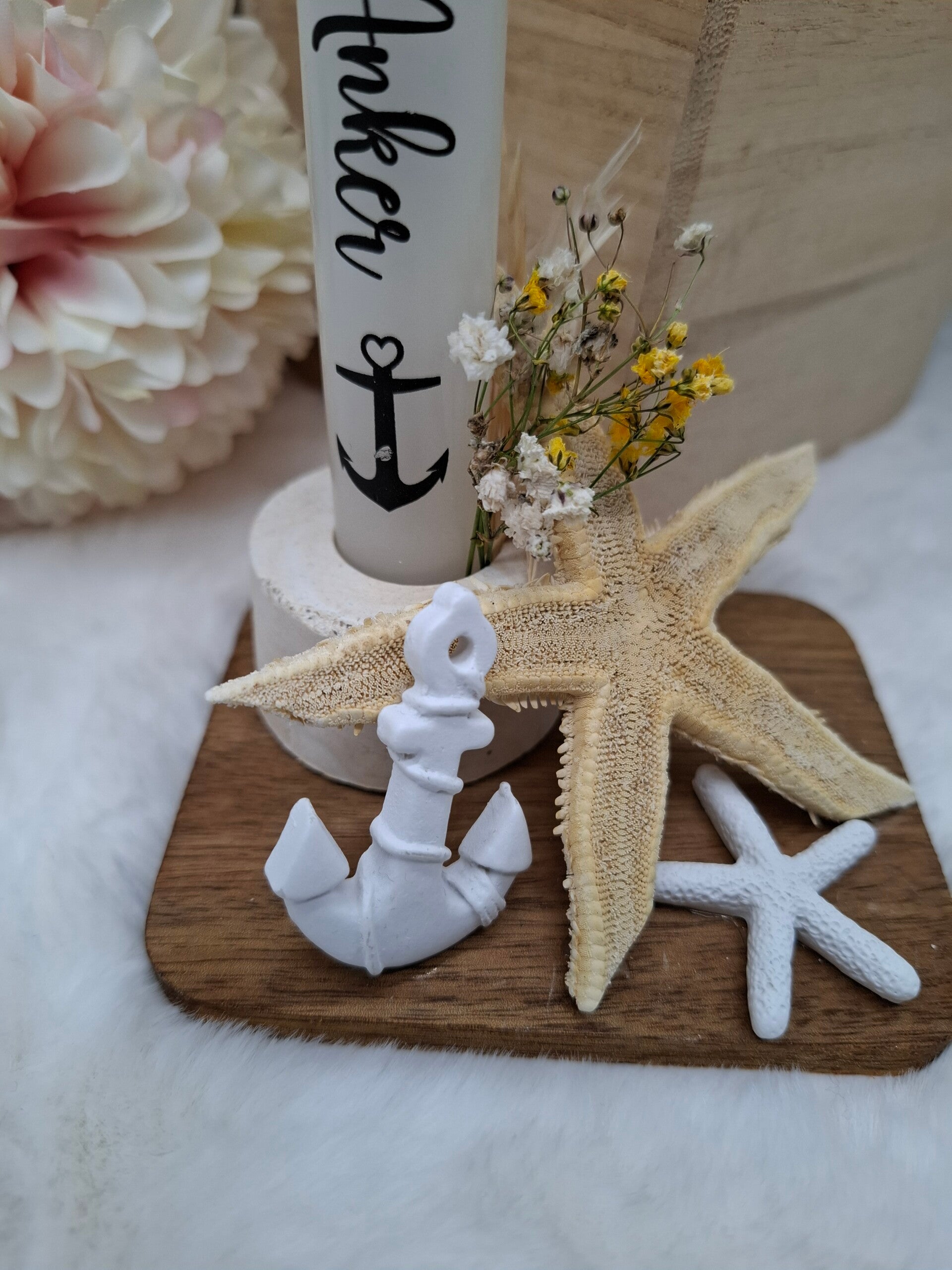 Zusammen mit maritimen Dekoteilen aus Beton und einem getrockneten Seestern ist dieser Kerzenhalter das passende Geschenk für Meerliebhaber.
