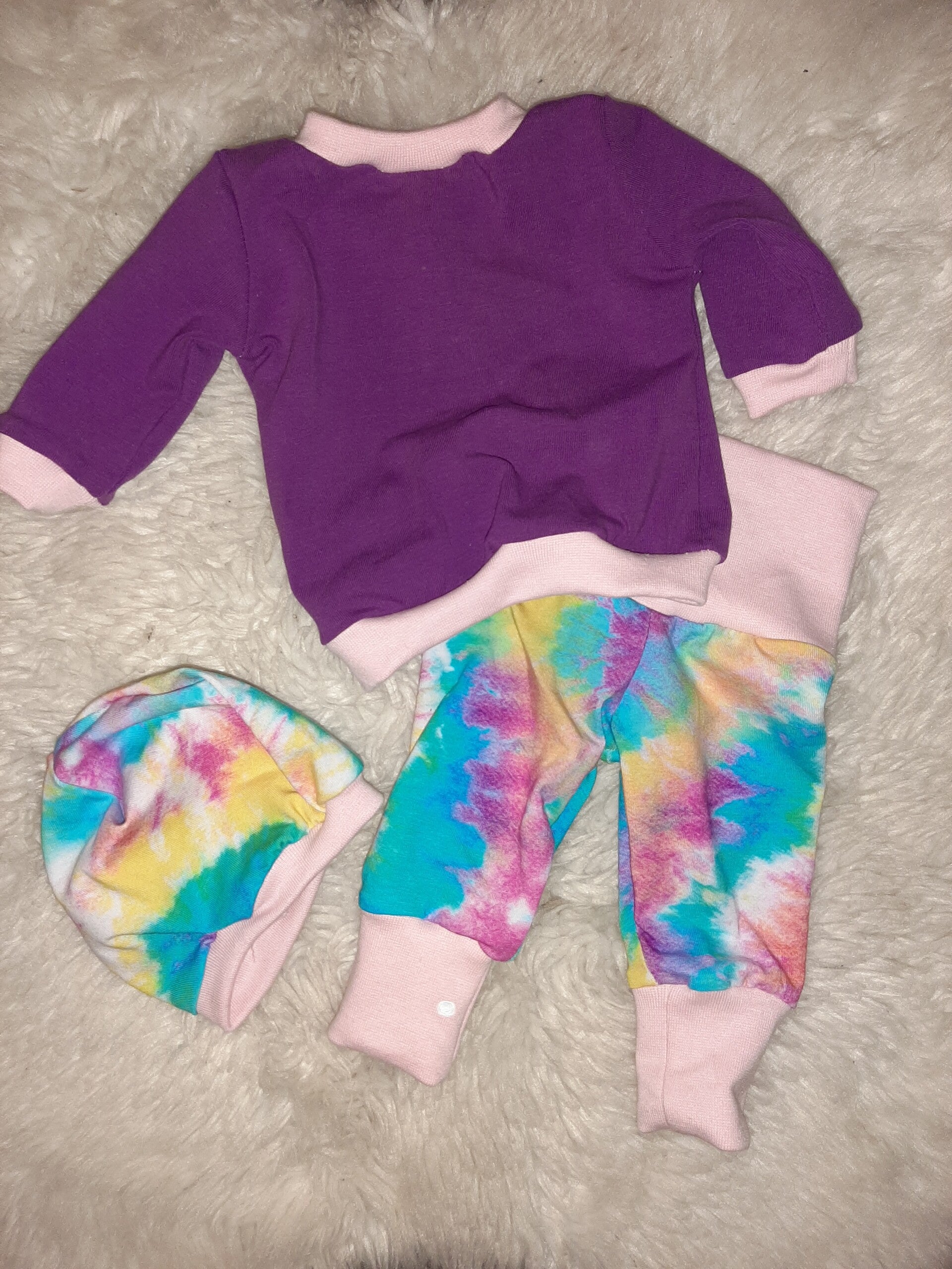 Das Set besteht aus 1 Hose, 1 Pullover und 1 Mütze.