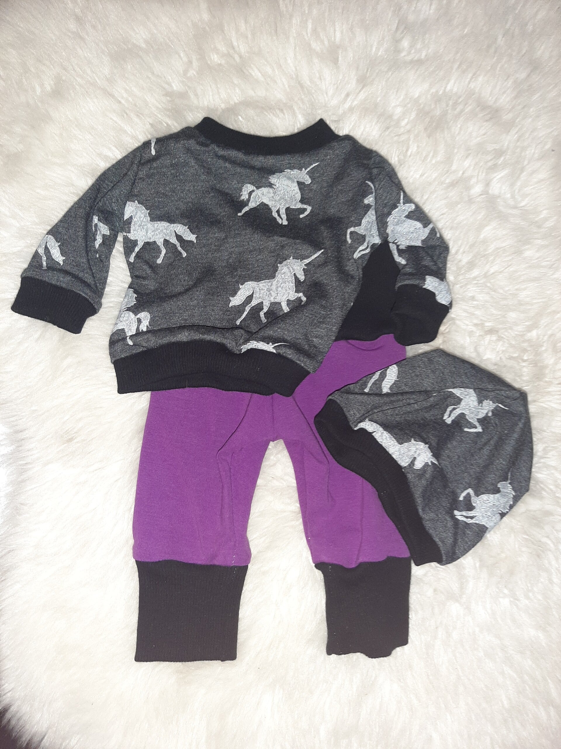 Puppenkleider Set | Gr. 43 cm | Einhorn grau