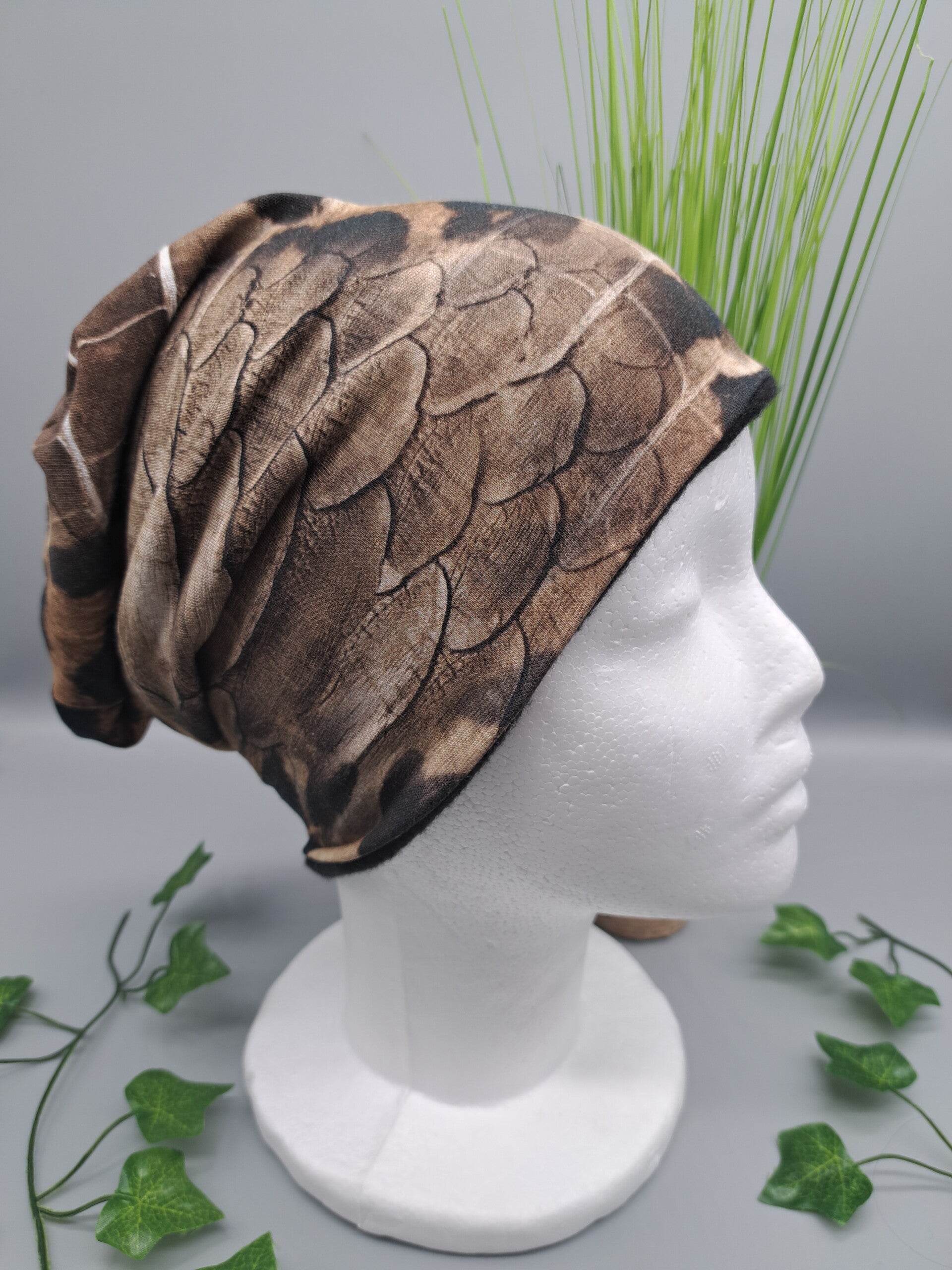 Diese Beanie ist mit Fleece gefüttert. Sie hält an kalten Tagen schön warm.