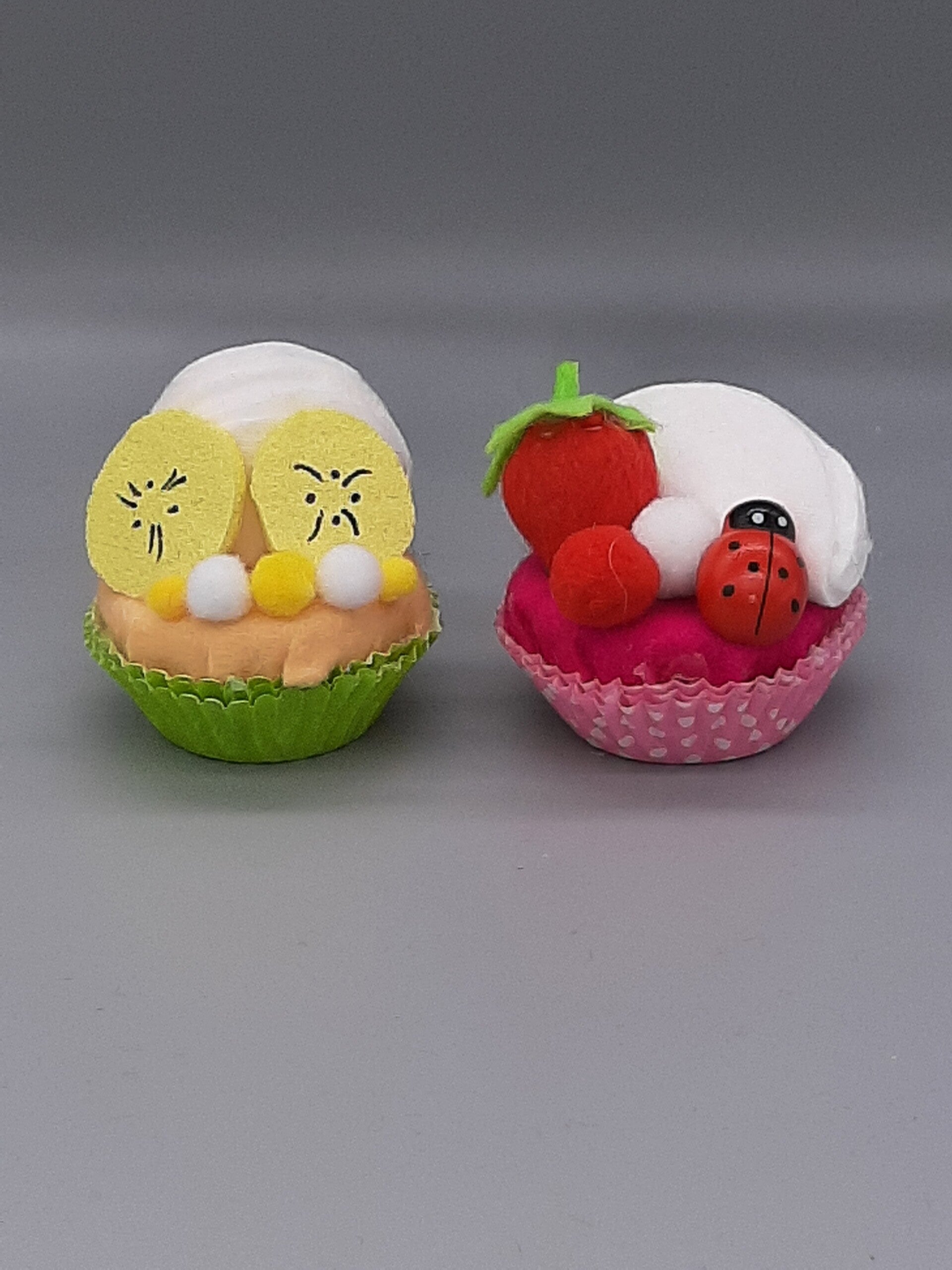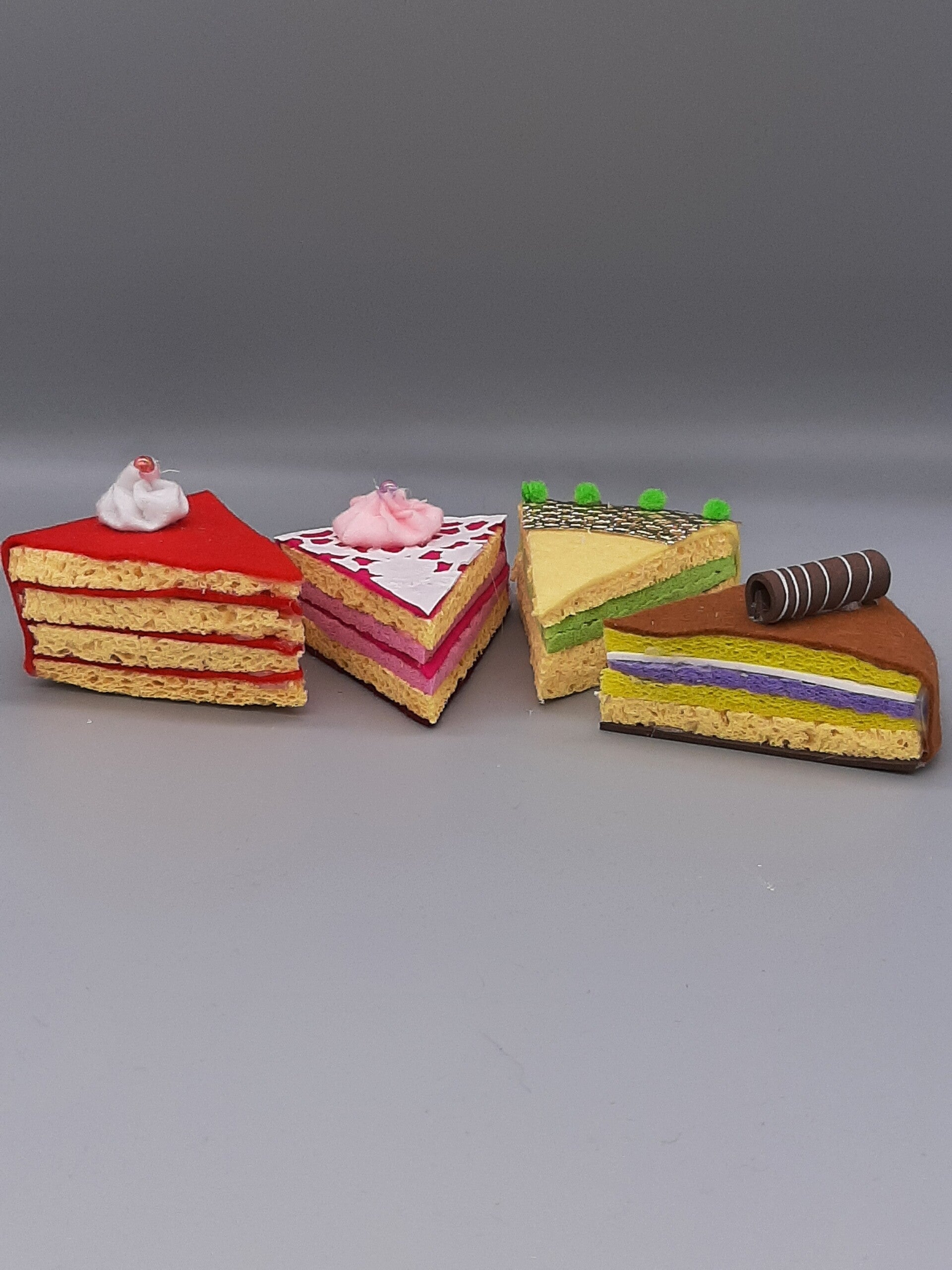 Diese Spielprodukte wurden aus Filz, Putzschwämme, Watte und zum Teil aus echten getrockneten Lebensmittel hergestellt.